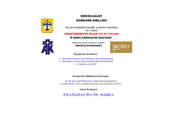 Konkurs jest przeprowadzany w każdej klasie 4, 5 i 6 podczas lekcji religii. O wynikach poinformuje nauczyciel religii.