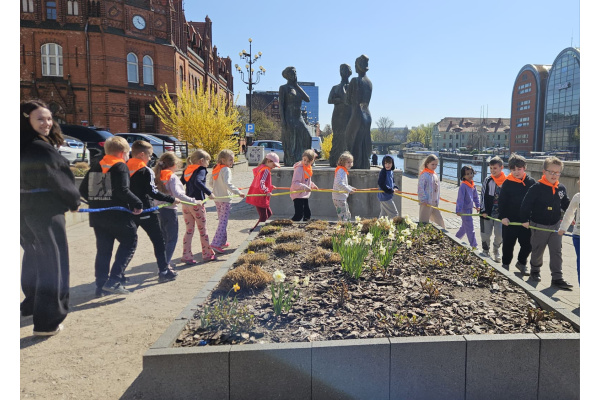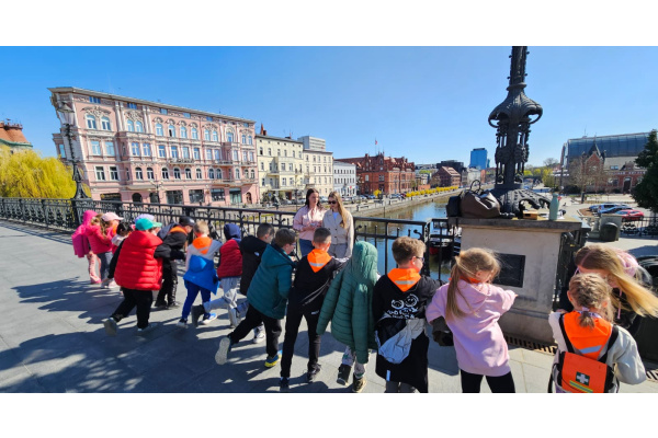 17 kwietnia 2026 r. uczniowie klasy 1b wzięli udział w wyjątkowym Wydarzeniu Specjalnym w formie gry miejskiej, zorganizowanym w ramach projektu „1346 KROKÓW DLA MOJEGO MIASTA – Mały Mistrz w Akcji – zdobywam sprawność Turysta – odkrywca”. Organizatorem wydarzenia był MOEN, a miejscem aktywności była Bydgoska Starówka oraz Wyspa Młyńska.