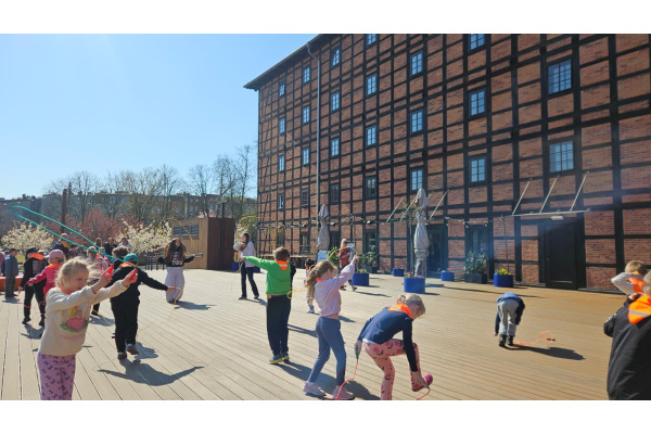 Dzieci rozpoczęły zabawę w Młynach Rothera, a następnie wykonywały zadania na kolejnych punktach trasy, poznając historię miasta i współpracując w grupach. Na każdym z punktów czekali animatorzy, którzy prowadzili ciekawe zabawy ruchowe oraz zadania nawiązujące do lokalnej tradycji i historii, wręczali także uczestnikom gry drobne upominki. Dzieci z ogromnym zaangażowaniem współpracowały w grupach, wspólnie rozwiązując zadania i wspierając się nawzajem. Pokonując symboliczne 1346 kroków dla swojego miasta, uczniowie w aktywny i radosny sposób uczcili rocznicę nadania praw miejskich Bydgoszczy.