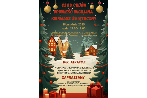 Z radoością ogłaszamy, że już 18 grudnia o godzinie 17.00 odbędzie się w naszej szkole wyjatkowe wydarzenie - Świąteczne Przedstawienie przygotowane przez naszych uczniów oraz Kiermasz Świąteczny.
