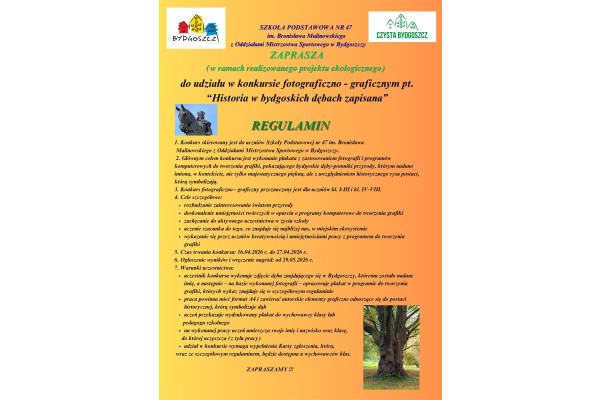 Uczniów Szkoły Podstawowej nr 47 w Bydgoszczy zapraszamy do udziału w konkursie fotograficzno-graficznym pt.