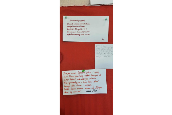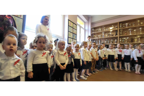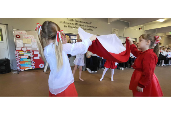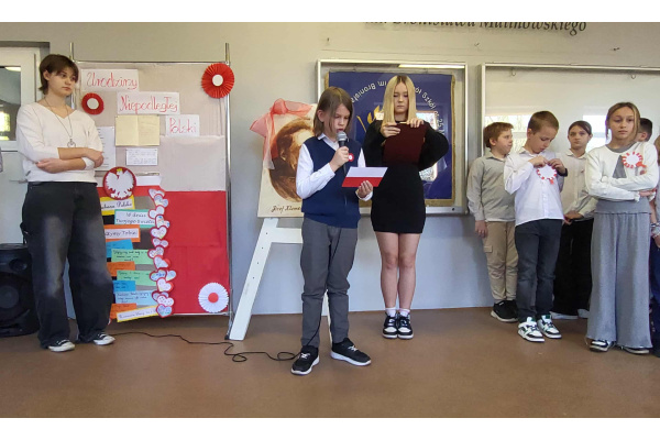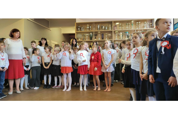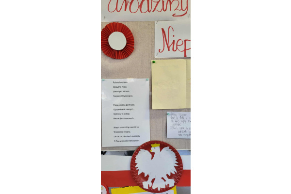 7 listopada w naszej szkole odbyły się uroczyste obchody 107. rocznicy odzyskania przez Polskę niepodległości po 123 latach zaborów. Najpierw w salach lekcyjnych oglądając prezentację multimedialną,uczniowie przypomnieli sobie trudną drogę Polski do niepodległości. Następnie na holu I piętra jak co roku wszyscy uczniowie szkoły podstawowej i grupy przedszkolne z wychowawcamiwspólnie odśpiewali hymn Polski. Każda klasa przygotowała życzenia dla naszej Ojczyzny, które zostały odczytane przez jej reprezentanta i przypięte do okolicznościowej tablicy. Miłym akcentem było wspólne śpiewanie pieśni patriotycznej „My, I Brygada” oraz taniec z flagą w wykonaniu uczennic z klasy 3b. Narodowe Święto Niepodległości to szczególny dzień, w którym doceniamy tych, którzy walczyli o to, byśmy mogli żyć w wolnym kraju. Wszyscy – zarówno uczniowie, a przede wszystkim nasi najmłodsi przedszkolacy - swoim strojem i postawą celująco zaliczyli tę lekcję patriotyzmu.