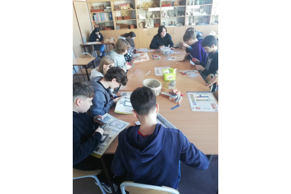 Dzięki zaproszeniu przez Panią Barbarę Binkowską uczennice i uczniowie klasy 8a odwiedzili w dniu 6 marca br. Zespół Szkół Budowlanych w Bydgoszczy mieszczący się przy ul. Pestalozziego 18. Mieli okazję nie tylko zwiedzić budynek szkolny, ciekawe pracownie i różne miejsca, w których uczniowie spędzają przerwy, ale także wziąć udział w warsztatach edukacyjnych w ramach Dni Renowacji organizowanych w ZSB: wykonywali projekt pokoju graczki komputerowej lub miłośnika książek, wycinali i składali bryły charakterystycznych dla Bydgoszczy budowli, wykonywali prace kredkami, a także malowali farbami gipsowe domki. Wszystkie aktywności bardzo podobały się uczniom, sama szkoła i panująca w niej atmosfera również – niektórzy będą brali tę placówkę pod uwagę przy wyborze szkoły ponadpodstawowej.